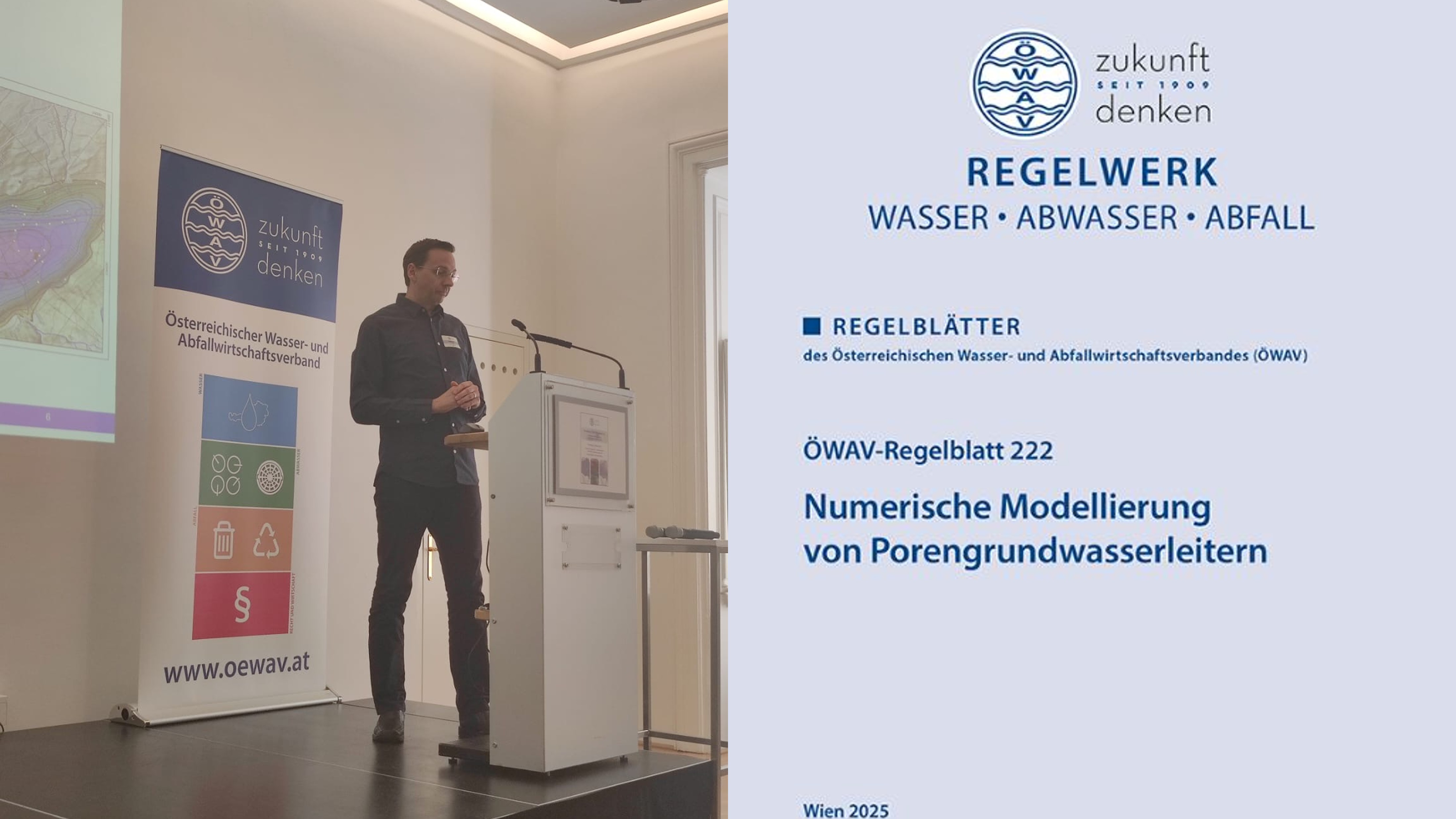 Artikel lesen ...Die TK CONSULT AG aus Zürich war an der Erstellung des neuen ÖWAV-Regelblatts 222 zur numerischen Modellierung von Porengrundwasserleitern beteiligt. Das im Februar 2025 veröffentlichte Dokument bietet praxisorientierte Leitlinien für Fachleute, Auftraggeber und Behörden. Beim Vorstellungsseminar des Regelwerks in Wien präsentierte die TK CONSULT AG die Anwendung des Grundwassermodells Aussermontafon im Auftrag des Landes Vorarlberg.